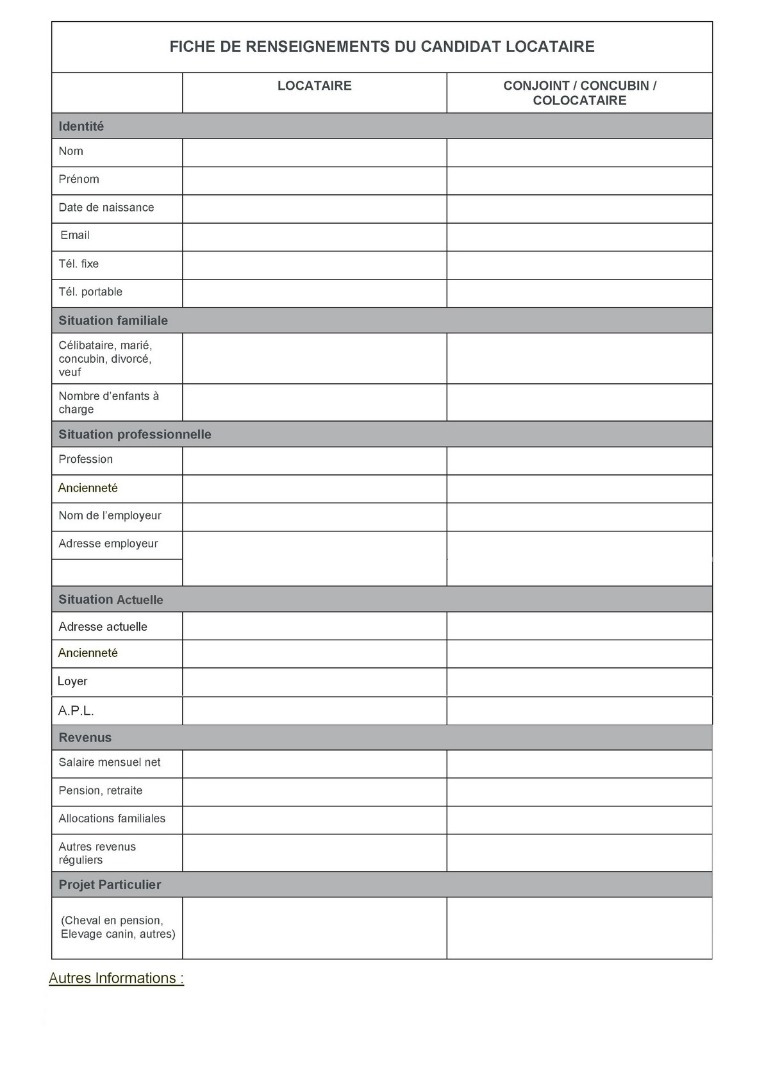 la fiche de candidature remplie complètement.